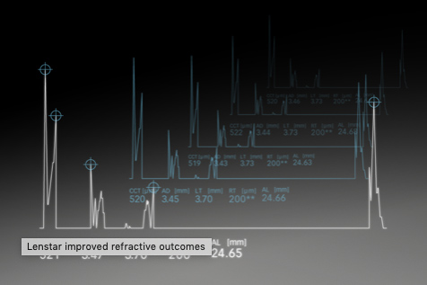 The latest biometer (LENSTAR) uses optical coherence tomography (OCT) to measure the structures inside the eye to a high degree of accuracy. Additionally, a number of additional parameters can also be measured such as the thickness of the natural lens. The additional measurements helps predict where the new IOL will sit once inside the eye and this further improves postoperative visual outcome.